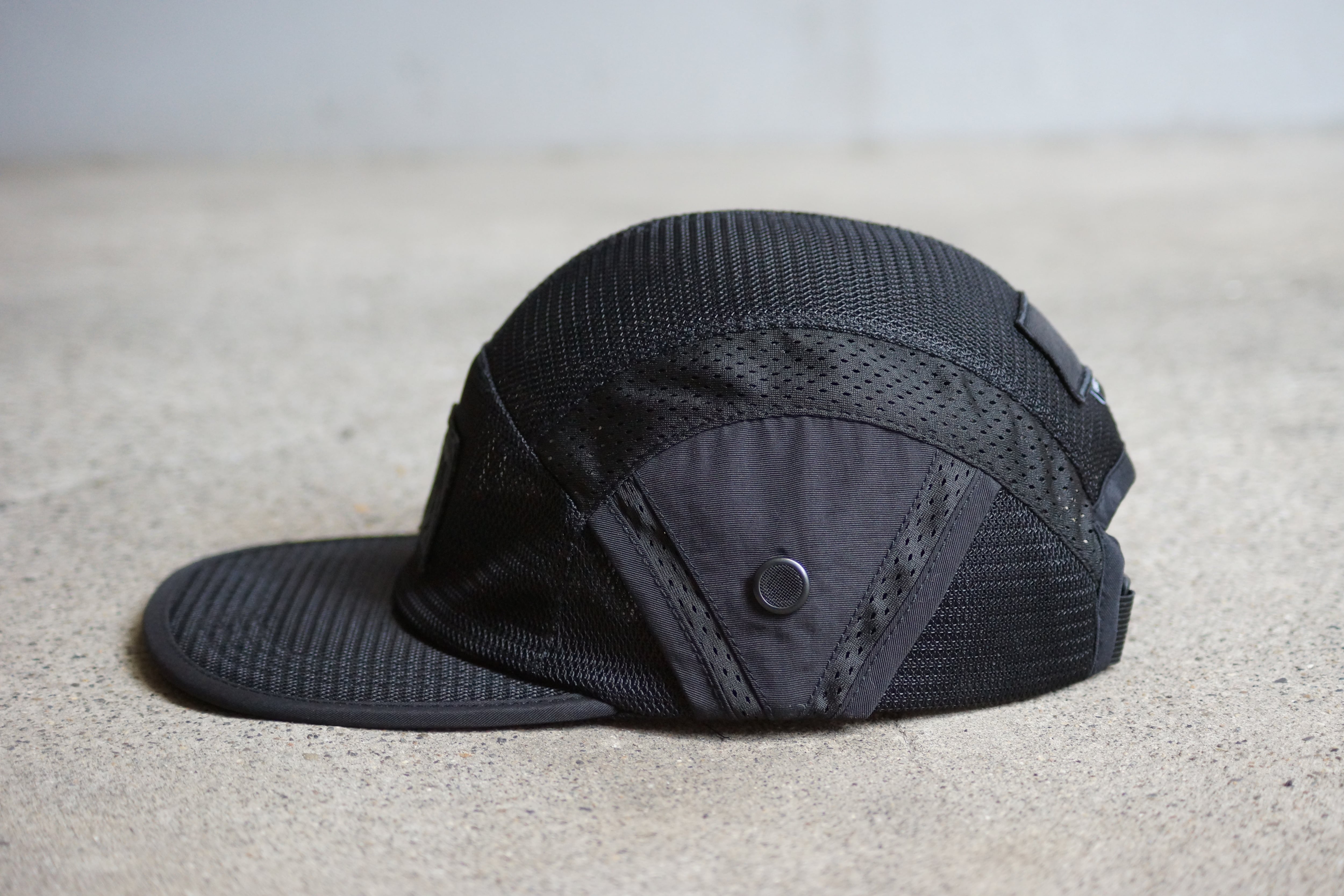 特徴的なサイドクラウンが、通気性とサングラスホールド機能を兼ね備えている、機能的なキャップ。異なるメッシュ素材を巧みに配置し、快適な通気性を実現しています。軽量設計で、長時間の着用でも煩わしさを感じさせず、スタイリッシュでありながら、しっかりとした機能を持つディテールが魅力です。