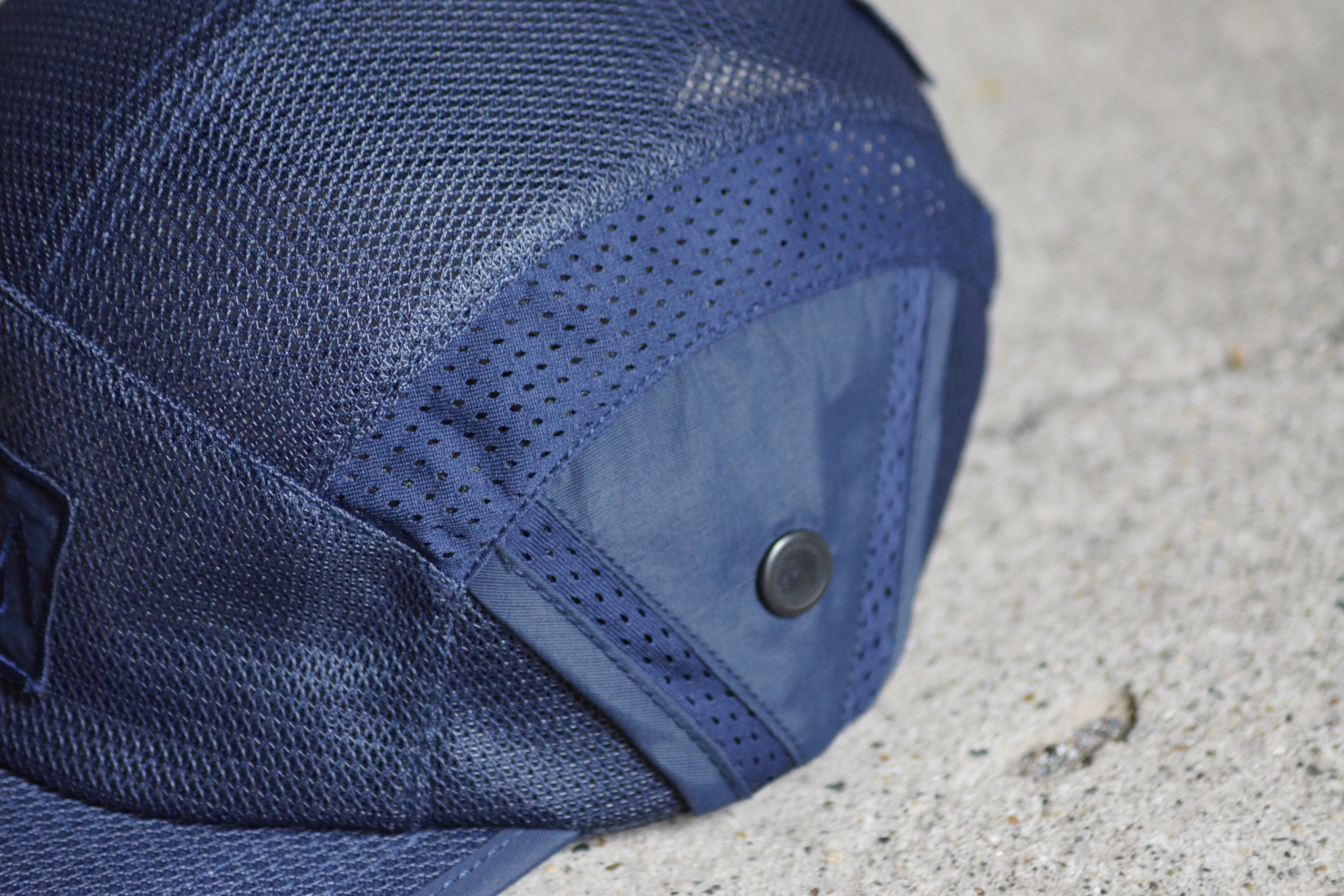 特徴的なサイドクラウンが、通気性とサングラスホールド機能を兼ね備えている、機能的なキャップ。異なるメッシュ素材を巧みに配置し、快適な通気性を実現しています。軽量設計で、長時間の着用でも煩わしさを感じさせず、スタイリッシュでありながら、しっかりとした機能を持つディテールが魅力です。